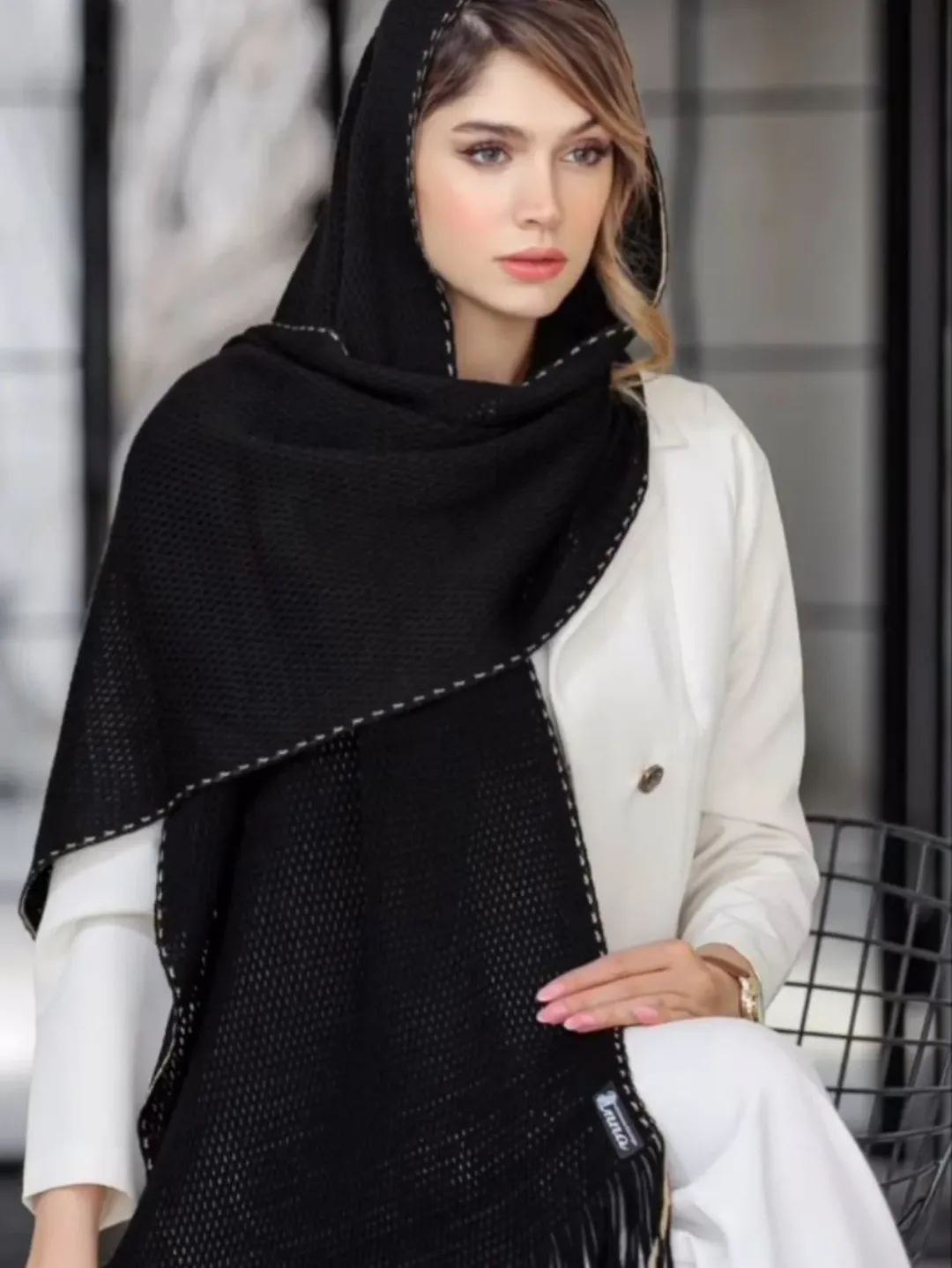 شال بافت آکریل حاشیه کوکدوزی لمه ریشه دار قواره ۲۰۰ در ۶۰